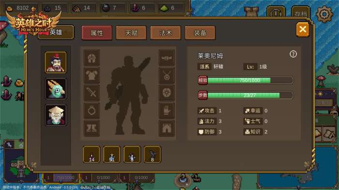 ✦英雄信息:英雄信息中显示所获得的装备、英雄属性信息、技能信息、经验、行动力。