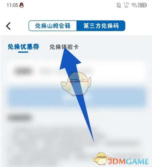 3、然后在第三方兑换码页面,点击兑换体验卡。
