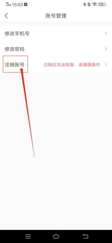 3、在这里我们就能看到“注销账号”的选项了,点击它;