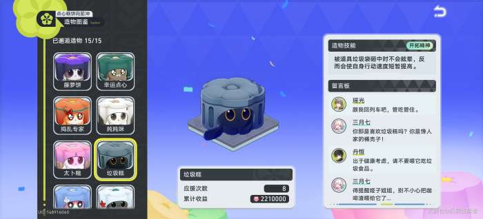 没想到我会把汤达人放在这个位置吧?纸面数据和实际情况是有一定差距的,汤达人其实非常稳健,针对它用糕点会比用垃圾靠谱得多,但有个缺点,掉出前3,后面想追上其实挺难的,人家都不屑扔道具给你了。