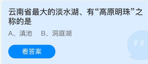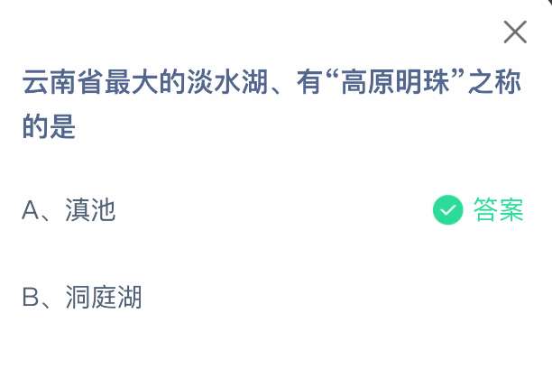 以上就是云南省最大的淡水湖、有“高原明珠”之称的是?支付宝蚂蚁庄园今日答题答案最新5.7,更多精彩内容,请点击关注pk游戏网更新!