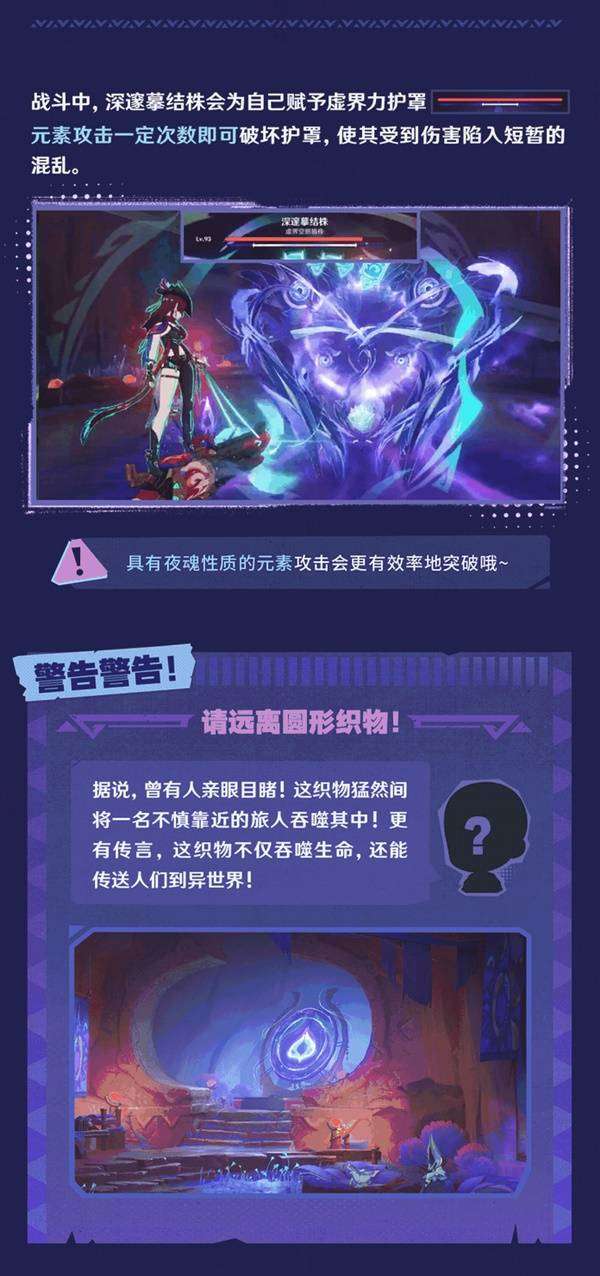 2、战斗中,深邃摹结株会为自己赋予虚界力护罩元素攻击一定次数即可破坏护罩,使其受到伤害陷入短暂的混乱。