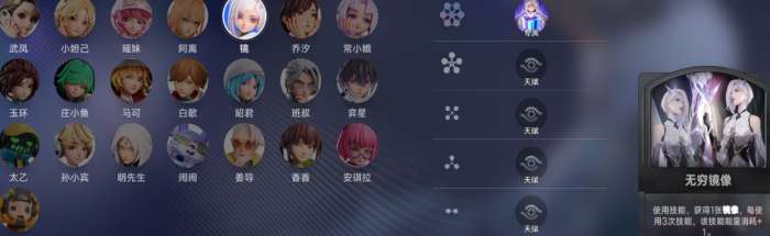 除班叔之外,在万象棋中另一个有内涵的棋子就是镜。她所体现出的核心机制不是简单的复制,而是在镜像的基础上创建出一套战术复用的体系。利用无穷镜像技能,她可以以能量消耗递增的方式,把当前打出的英雄牌换成上一轮用过的同名卡牌,使关键单位连续登场。她买英雄的时候会自动获得镜像层数,被动增益使她在搜卡阶段就处于有利地位。对喜欢灵活变阵、根据形势随时调整战术的玩家来说,镜的高机动性以及应变能力就是最大的亮点。