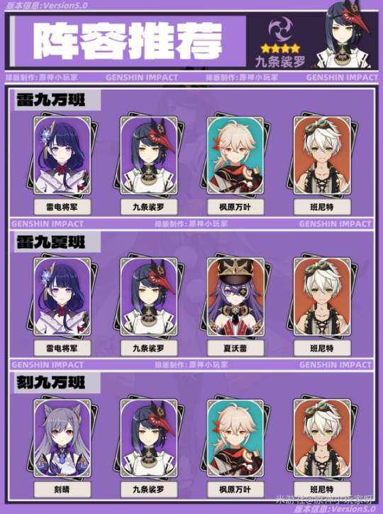 ③刻九万班:刻晴+九条+万叶+班尼特