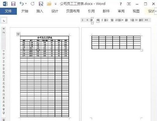 1、打开Word软件,打开需要处理的表格,在这个文档中有一个跨页的工资表,第二页的表格没有出现第一页的表头,如下图所示:
