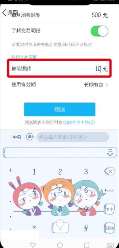 8、可以设置单笔额度,和使用效期,点击“赠送”即可;