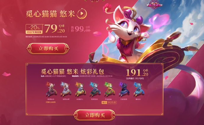除了改名卡将于近日上线并半价出售外,LOL悠米&金克丝情人节限定皮肤将于明日上架。