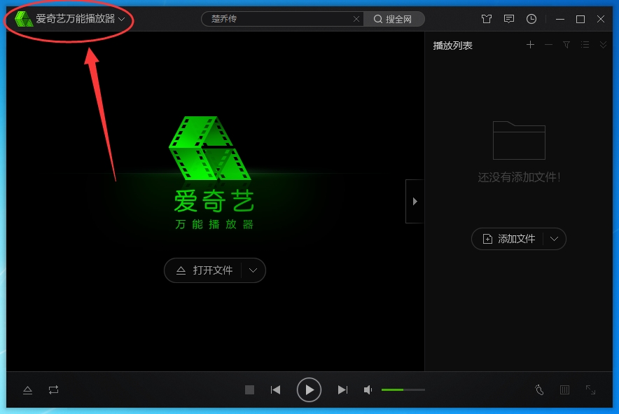 1、打开爱奇艺万能播放器,在界面左上角找到“爱奇艺万能播放器”几个字,点击它,