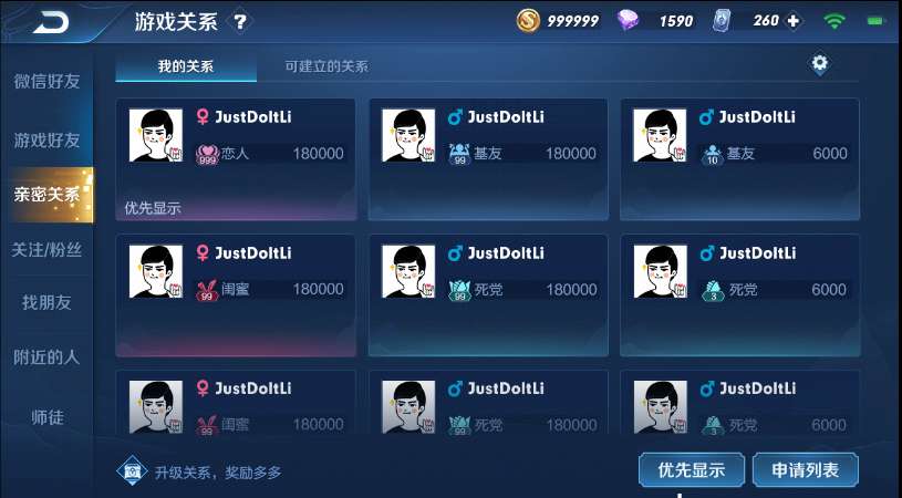 我们对亲密关系界面进行了整体交互优化,内容包括独立的亲密关系界面等,召唤师们可以更清晰和便利的使用亲密关系相关功能了,可以在好友界面中查看到相关内容;