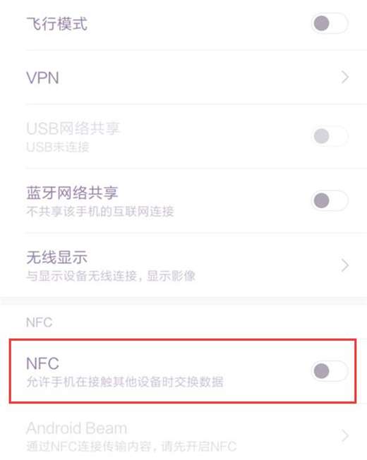 3.在更多连接方式界面,找到nfc功能选项,点击打开即可。