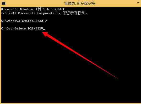 8、然后再cmd下输入sc delete 服务名称来卸载服务,输入完成之后回车即可;
