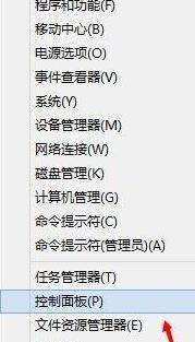 1、右键开始菜单--打开控制面板;