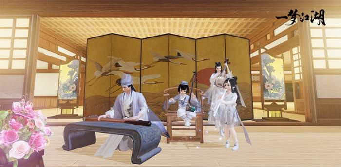 如果厌倦了江湖的喧嚣嘈杂,宅在家里当个文艺青年也是不错的选择,过一天闲致生活。在《一梦江湖》的家园中,精致的乐器家具都可以拿起来演奏,古琴、琵琶、二胡、萧或是阮,各种传统乐器任君挑选,琴音坠落,丝丝入扣,不少玩家都把这个江湖玩成了音游。