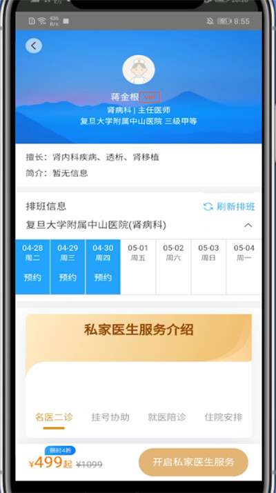 5、选择好日期医生后即可挂号