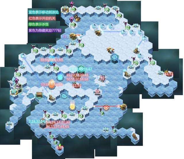 1、按照数字顺序依次推进即可,怪物无难度,选好遗物即可轻松过关;