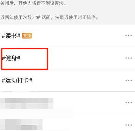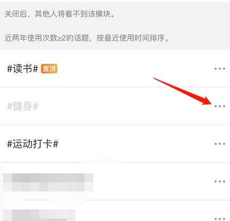 之后就会进入到常用话题的管理页面了。在这个页面内可以看见隐藏的话题词,灰色显示的话题就是被隐藏起来的。想要取消隐藏,就点击其后面的三个点的按钮。