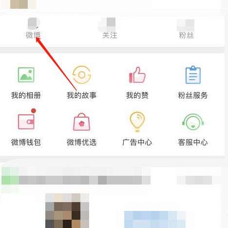 在“我”的页面内,选择下图所示位置处的微博数量,进入下一页面。
