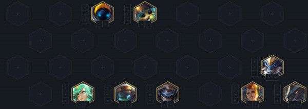 阵容在前期的过渡选择上是非常关键的,早期的过渡阵容可以选择双斗双未来双枪的体系来打过渡,如果在早前版本有玩过很经典的四斗四枪的玩家应该就会了解这个阵容的玩法,早期的运营思路是非常类似的,按照斗枪体系来打。前期不要断节奏,要尽量的保证自己能拿到连胜的经济奖励,在七级前都不是关键时期,所以尽可能的不要在前期主动去D牌,要安稳的过渡到七人口才是我们的发力期。在早期可以选择速七在七人口D牌,重点是要找到阵容的枪手核心金克丝以及前排的主T纳尔,等这两张核心牌都上了以后阵容就算是初步成型了,可以进一步存钱准备上八人口,在八人口的主要目的就是D龙王(早期龙王可以用其他的奥德赛来代替、过渡)。