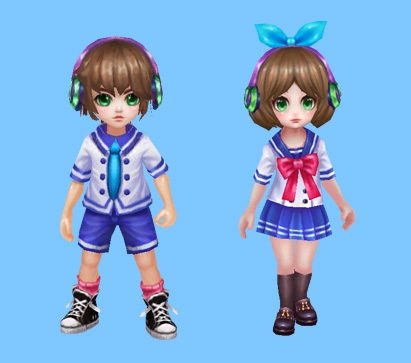 这套时装主打的是校园风,让人回忆里校园里霸道的学长和清纯的学妹之间的羞涩故事。学长们穿着校园制服,头戴耳机,绑着蓝色的小领带,到处勾搭学妹;而小学妹则戴着蓝色发带,胸有一束鲜红的蝴蝶结格外醒目,害羞地回应着学长的追求...一股青春的荷尔蒙气息扑面而来,有木有!