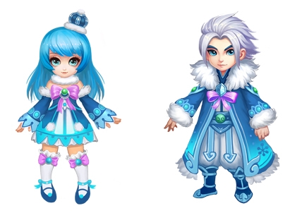 最后就是冰雪时装了!这套时装无论男女在衣领处都有厚厚的绒毛,衣服内衬也是加绒加厚的,让冬天都变得暖呼呼的。衣服的颜色主调也是通透的湖蓝色,渐变式的幽蓝再加上雪花图案以及可爱的领结,彰显出这套时装的高贵与华美。穿上它,没人比你更像贵族!