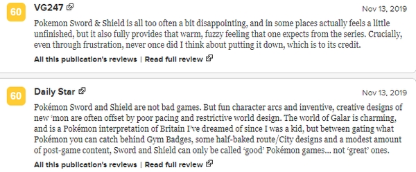 目前《宝可梦:剑/盾》在Metacritic网站的媒体平均分为81分,可以说也颇具有两极分化的倾向。