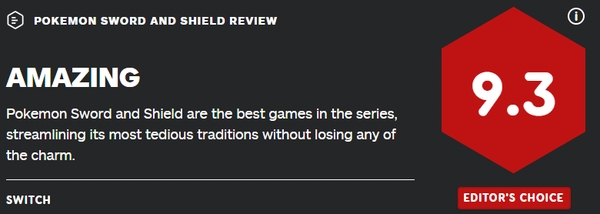 其中知名游戏媒体网站IGN给出了9.3分的超高评分。在简评中,IGN写道:“《宝可梦:剑/盾》是《宝可梦》系列的最强一作,在精简了系列传统繁复元素的同时,还让游戏保持了极高的魅力。”