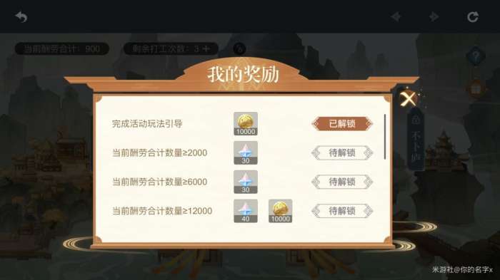 每项打工首次进行之后,就会进行触发事件的,此次也是累积到一些的酬劳,解锁打工酬劳就可以获得丰厚的奖励,有原石和摩拉等奖励,通过打工获得额外的奖励。