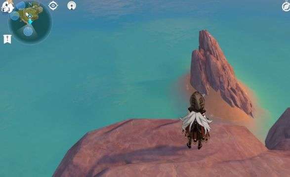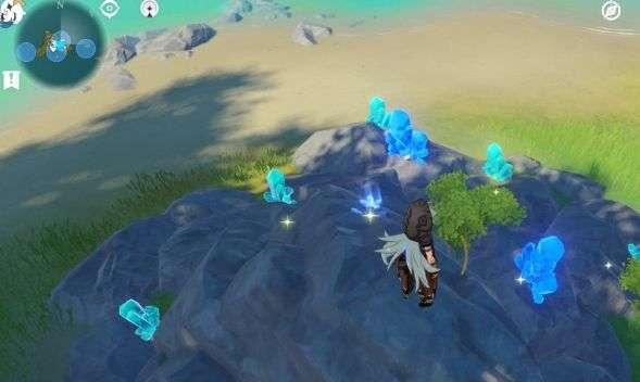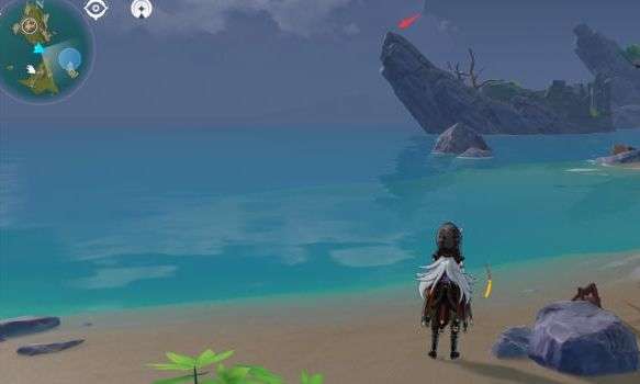 跑到西侧大岛海边有两个丘丘人在挖沙子碎片就在他俩面前。