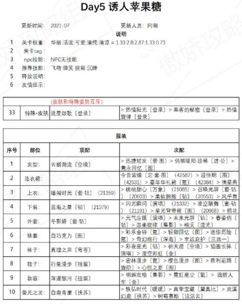 关卡权重:华丽、活泼、可爱、清纯、清凉