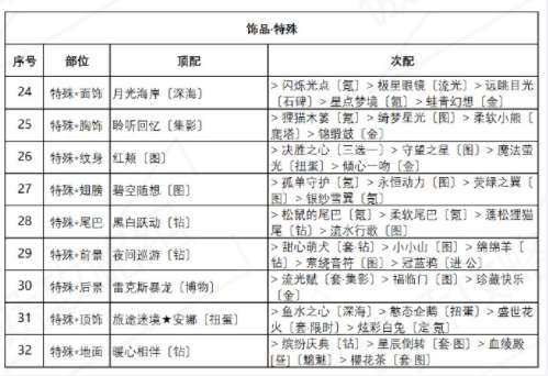 特殊饰品: