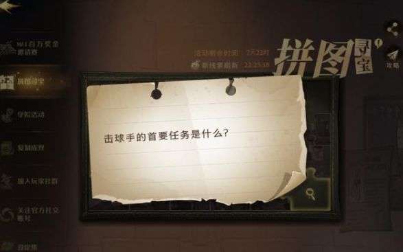 哈利波特10.12拼图寻宝线索,击球手的首要任务是什么,这个是今日的第二个线索,在什么地方可以找到对应的位置,如何找出线索,下面就来介绍下击球手的首要任务是什么线索怎么找。