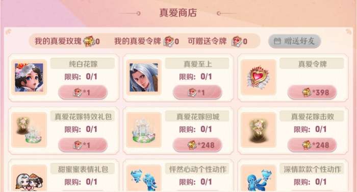 真爱令牌可赠送给好友使用,不过赠送后,被赠送方无法再转赠给其他人,真爱令牌除了兑换两款限定皮肤外,还可兑换88个皮肤碎片和真爱花嫁特效包,若有多余的真爱玫瑰可用来兑换150点券卡、300点券卡、播报、动作和专属表情等奖励!