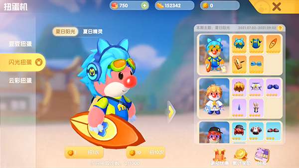 阳光冲浪板可通过闪光扭蛋机中的夏日眼光奖池抽奖获得,根据个人运气来抽取,不过需要注意的是,该冲浪板只能搭配阳光冲浪套装使用,只使用冲浪板无法冲浪;
