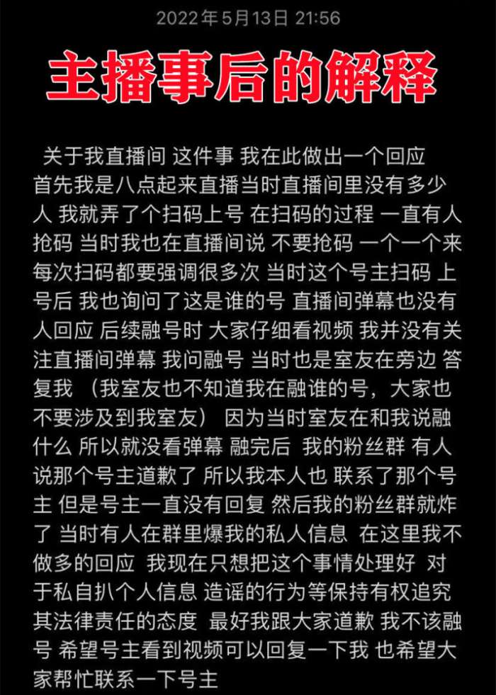 起因是一名主播(名字叫双鱼)在直播的时候,说要帮直播间的榜一看看账号,因此让榜一大哥扫个码就行,但是这个码发出来后被另一个水友直接扫了,结果主播就登了这位水友的账号。