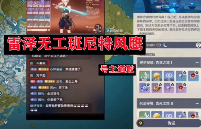 完事后主播感觉自己还挺仁慈,就说:“就把你武器给融了,圣遗物我就不动了”。