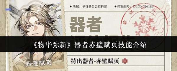 物华弥新器者赤壁赋页技能是什么?物华弥新游戏中有着众多角色,他们被称为“器者”,分为轻锐、远击、宿卫、构术、战略五个职业,特出、优异、新生三种稀有度。那么游戏中新器者赤壁赋页即将登场,器者技能是什么呢?小编为你准备了一份攻略,一起来看看吧。