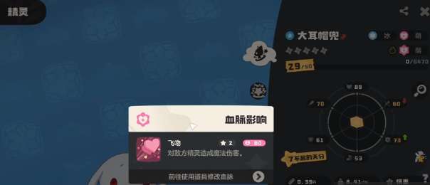另外在战斗过程中还需要去合理的使用技能,它的飞吻技能针对敌方的精灵就可以造成比较可观的魔法伤害。不过要注意的是,在单次战斗的过程中,这一个技能就只可以使用一次,需要把握好释放的时间。想要让大耳帽兜实现蜕变进化,那还需要满足两个核心的条件,第1个就是等级要求。精灵必须要达到50级才可以触发进化的机制,另外还需要完成放生的任务,累计放生10个左右的精灵,才能完成进化合成,在进化之后就可以迎来华丽的变身。