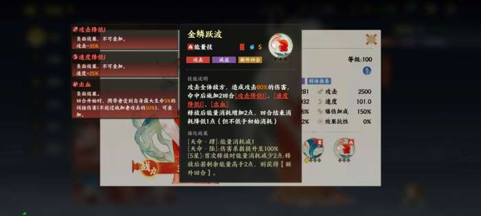 【金鳞跃波】首耗-2,群体减速25%+减攻35%