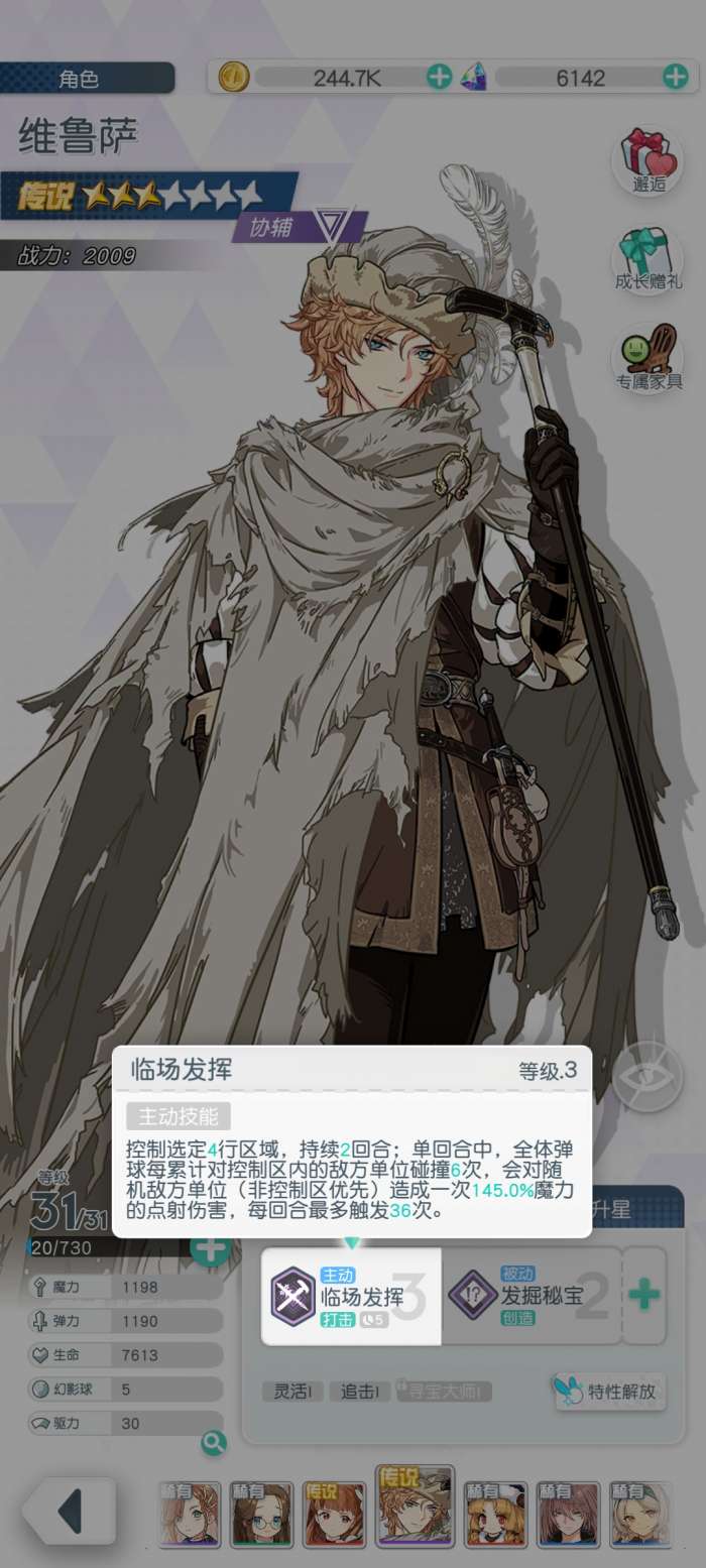 玩家在游戏前期过度阶段时,推荐搭配阵容有:维鲁萨,魔女,茵卡,露娜,赫维尔(农场奶妈),来保证对战的持续进行。这一阵容搭配的优势在于,魔女和茵卡能够提供有效的控场和aoe,露娜可作为副c进行补刀式输出,赫维尔保障连续的续行能力,在平民替代阶段,最低配的球伤队,可以搭配维鲁萨,芙蕾尔或者是索娅,加上任意的三星球伤辅助,若和阿本,倘若玩家的芙蕾尔角色没有达到满星时可使用主角或索娅缓冲,如果奶量不足可更换赫维尔。