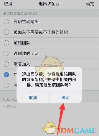 6、最后,点击“确定”就可以退出团队了。
