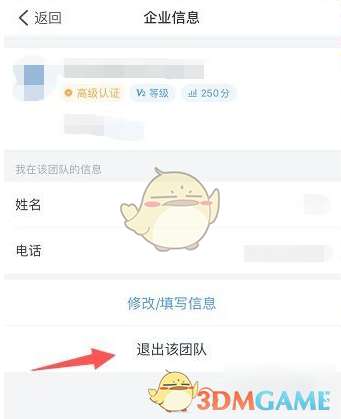 4、进入企业信息后,点击“退出团队”