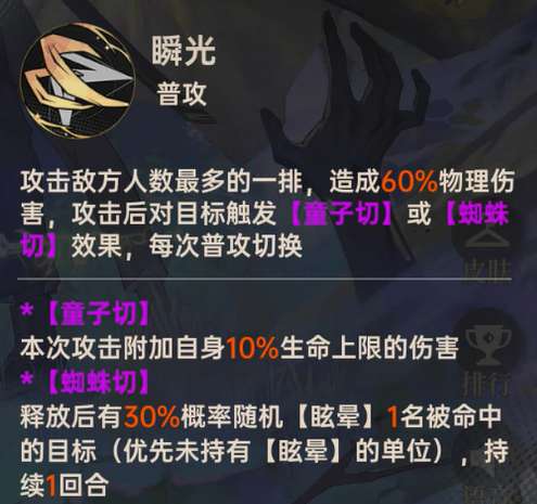 先说说他的普攻机制吧。天照命的普攻会攻击敌方人数最多的那一排,这个设定就决定了他比较适合打群体战。普攻会在童子切和蜘蛛切之间切换,童子切能增加额外伤害,蜘蛛切有概率眩晕目标。这两个效果交替出现,让他的普攻变得很灵活。特别是蜘蛛切的眩晕效果,虽然只有30%触发率,但是在关键时刻能打断敌方的节奏。而且这个眩晕会优先给没有被眩晕过的目标,这样就不会浪费控制效果了。等到超限3级之后,持有王权状态时有50%概率同时触发两个效果,这时候输出和控制就能兼顾了。