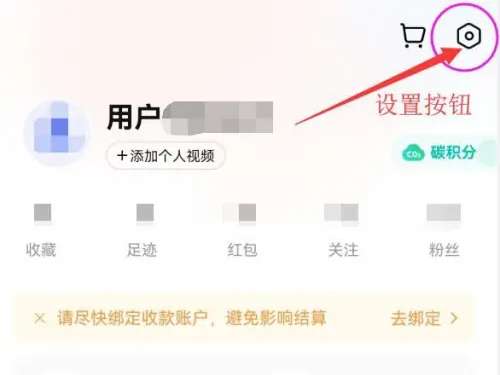 进入转转app后,在“我的”页面中,点击右上角设置按钮进入,如图箭头所指位置。