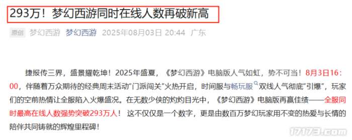 怀旧周报:293万在线!《梦幻西游》人气再创新高;20年来头一回!魔兽国服号召反内卷2025-08-10 09:510次阅读