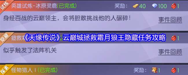 《天缘传说》云巅城拯救霜月狼王隐藏任务攻略2025-08-07 10:140次阅读