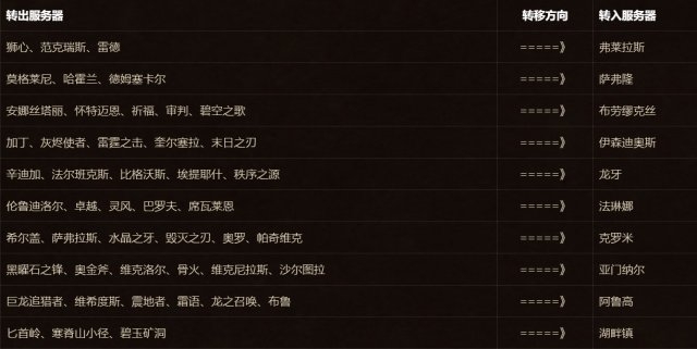以下47组服务器开启新的免费角色转移服务: