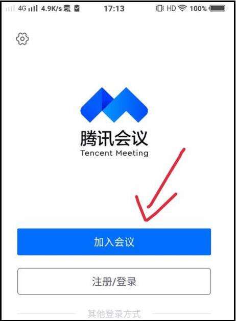 第一步,打开腾讯会议,可以看到登录、注册选项等方式,如图所示:
