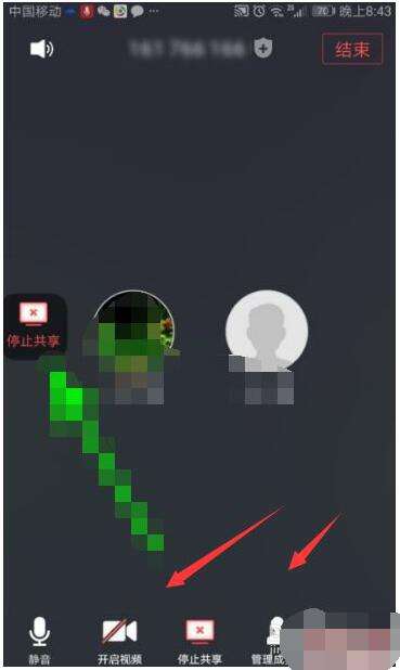 第五步,进入到会议室后,即可以参加会议,并且可以看到个人麦克风、视频是否关闭等信息,如图所示: