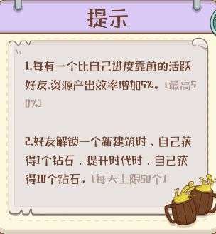 3、每当好友解锁新建筑时,你将会获得1个钻石;好友提升时代你讲获得10钻石。(每日上限50个)