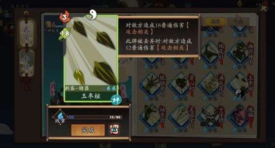 2. 如果【暗玉枣核】和【输出卡】已经全部减到0费,跳过该步骤,否则打出【暗玉枣核】抽回【极阴神功】继续打出直至实现全部0费。